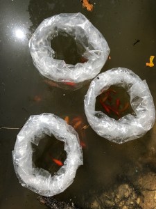 If I am raising the chicks or ducklings, I put them into a large plastic crate lined with hay. They need a heat lamp, water and food. I experiment with the height of the heat lamp – if they are huddled directly underneath it is too high, if they are in a far corner, it is too low. The water needs to be in a very shallow container so they can not drown (they are cute but stupid.) I feed them chick crumb. Some people give chicks medicated chick crumb because chicks are prone to infections (It’s not unusual for an apparently healthy chick to suddenly die.) However, I think it is better not to introduce antibiotics unless an animal is actually ill and I would prefer to risk the odd bird by giving them a more natural chick crumb. You cannot feed medicated chick crumb to ducklings or they will die.