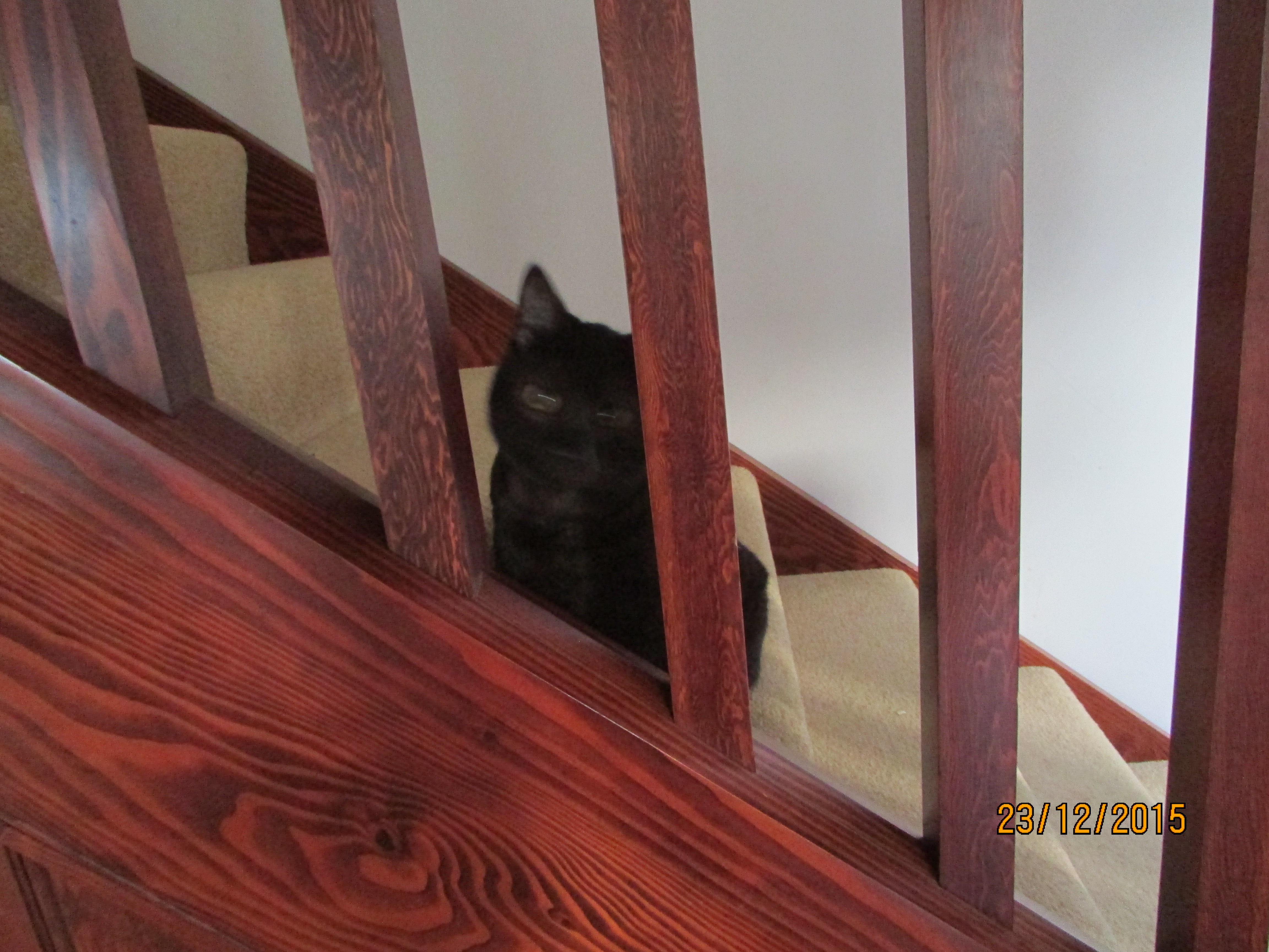 She heard Peter’s key in the lock, the slam of the door and the bump of his briefcase landing in the corner. She poured herself a glass of water as he hung his coat in the cupboard, before pushing open the kitchen door. Side-stepping the cat, he moved to kiss her head.