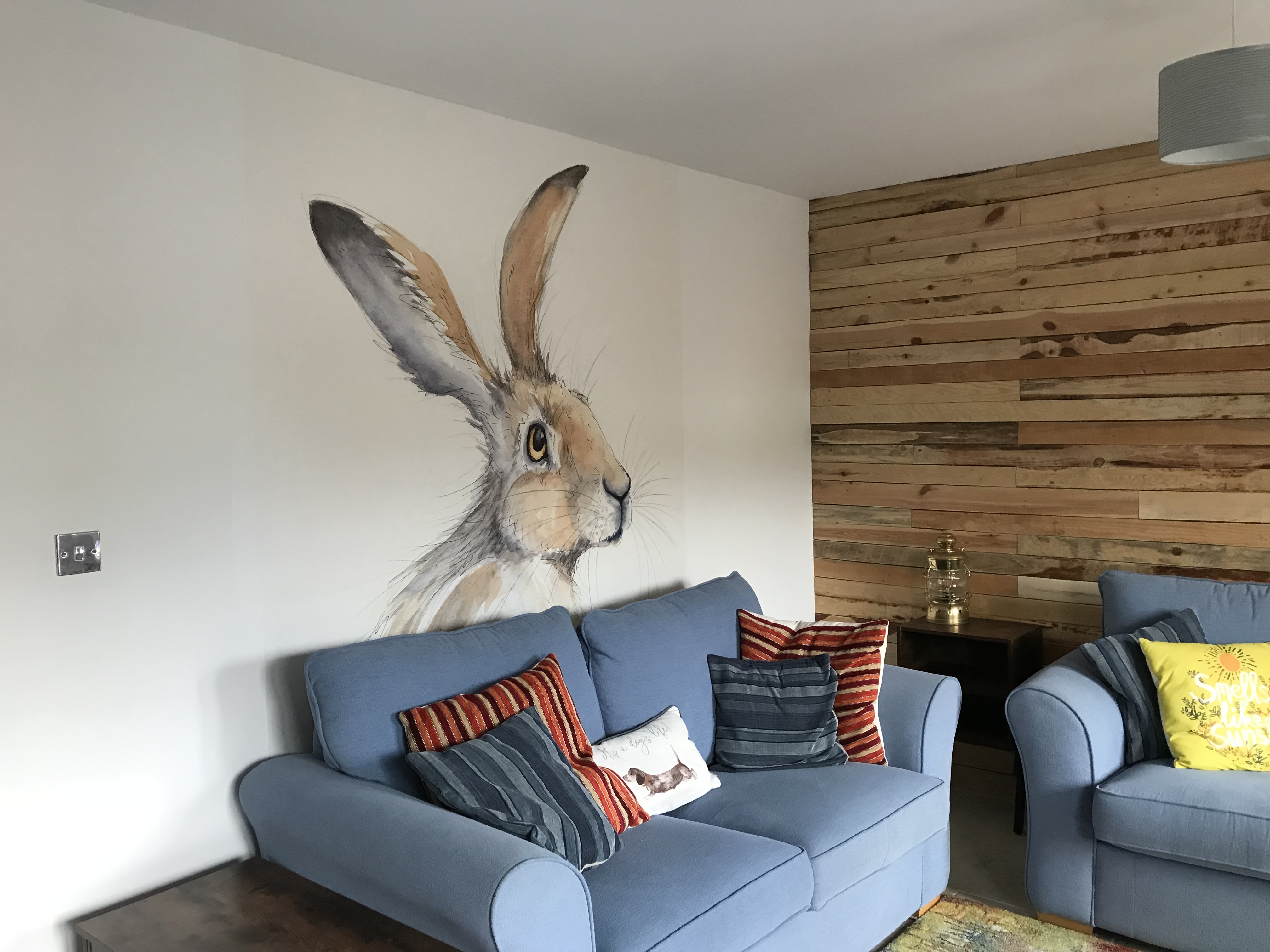 Things started to be difficult fairly early on, but we will skip the description of the dog fouling in the car on the way there, and jump straight into the cottage—which was lovely. A small semi-detached house with two bedrooms and three bathrooms, it seemed ideal. It was incredibly clean, and everything was comfortable and modern. They had painted murals on the walls, and there was a view of the sea from an upstairs window. I set up a table with my computer and books, and settled into a week of study and seaside.