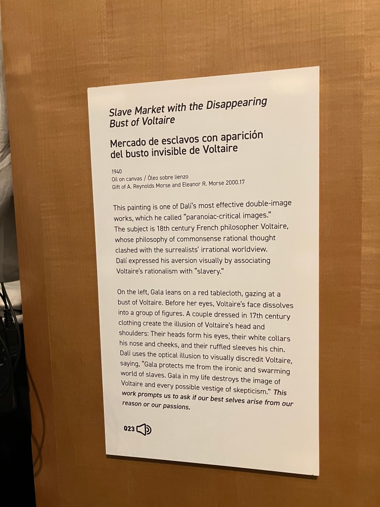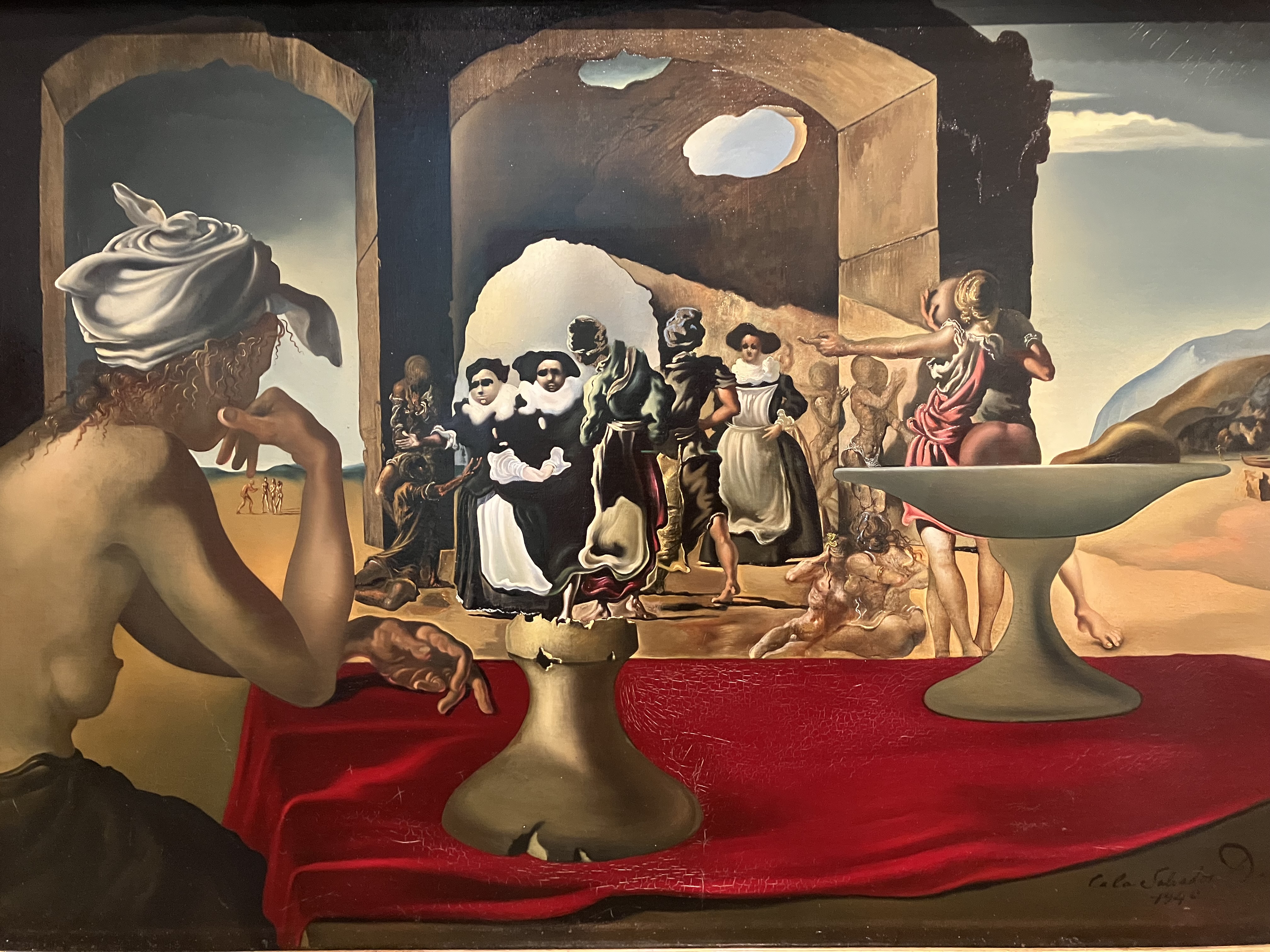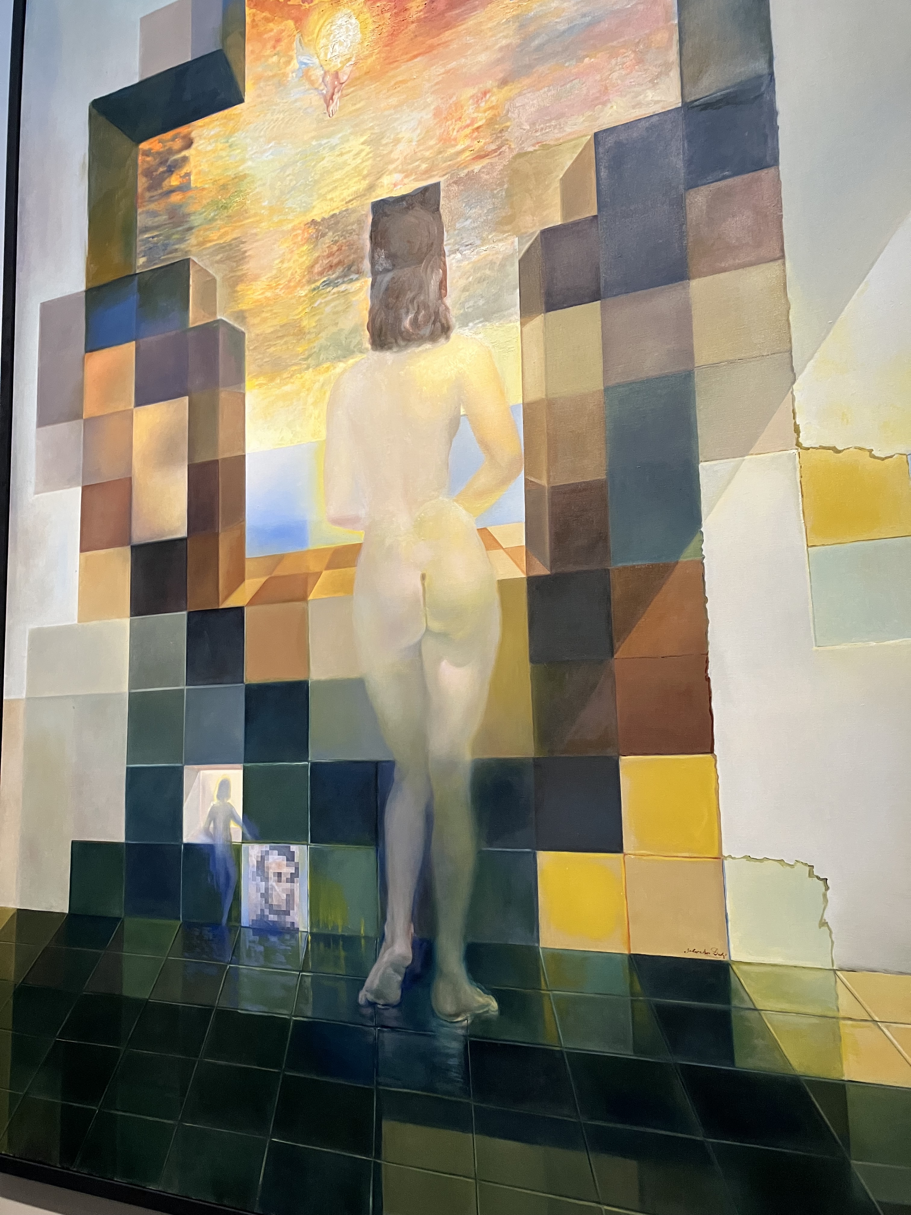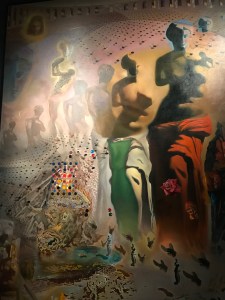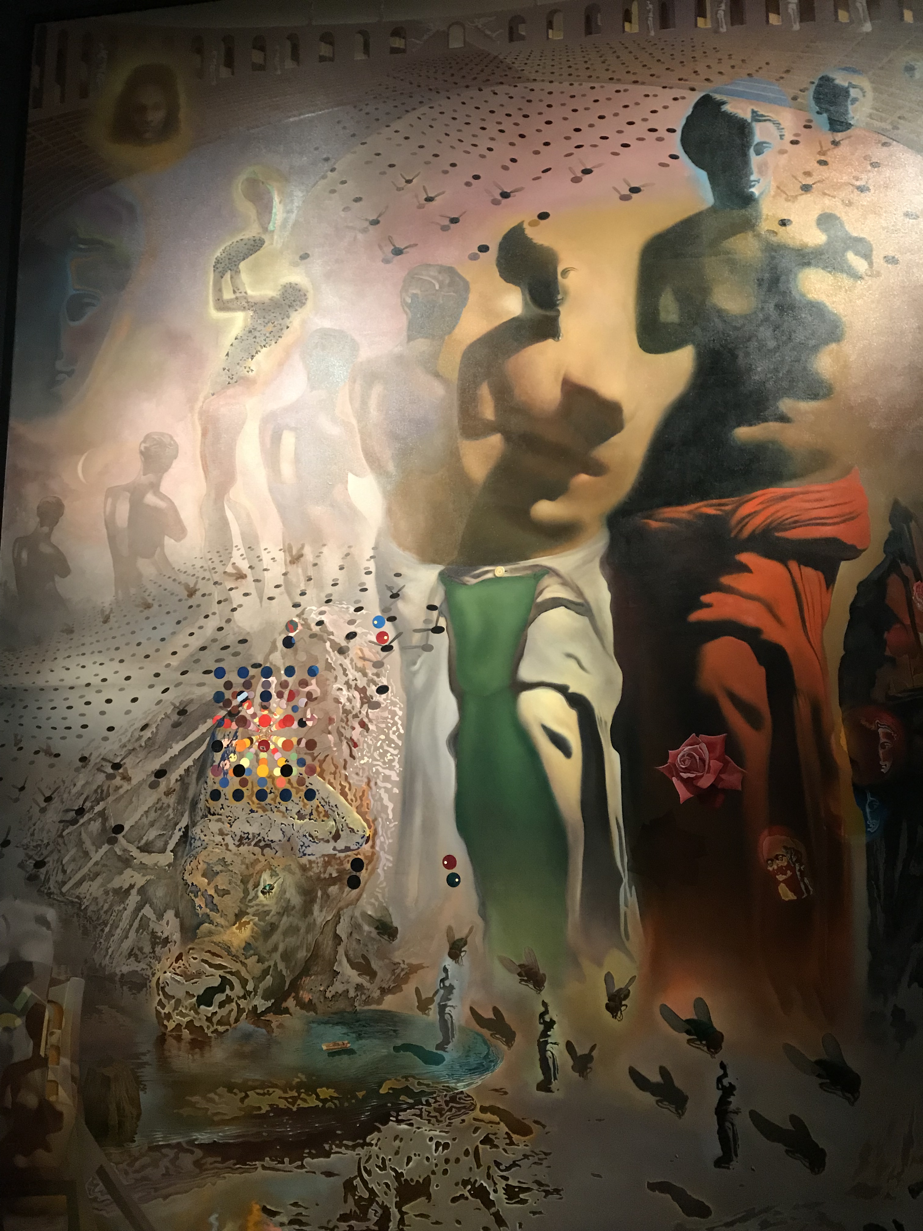 Then we wandered to the Salvador Dali museum, which we visited in 2019 and both enjoyed. The gift shop has very attractive merchandise, which is as lovely to look at as the pictures, not that I would actually want to own any of it, but it’s fun to look at. Then we walked up the spiral stairs to the galleries and were amazed again at Dali’s skill, enjoying the colours and images, especially the paintings that had images within images. I felt that Dali enjoyed telling a story, or making a statement, or sometimes just enjoying the science of how the brain detects images. The best (in our opinion) display of 2019 had gone, which was a shame—previously there had been an audio-visual digital display explaining the paintings, helping you see what was hidden within them.