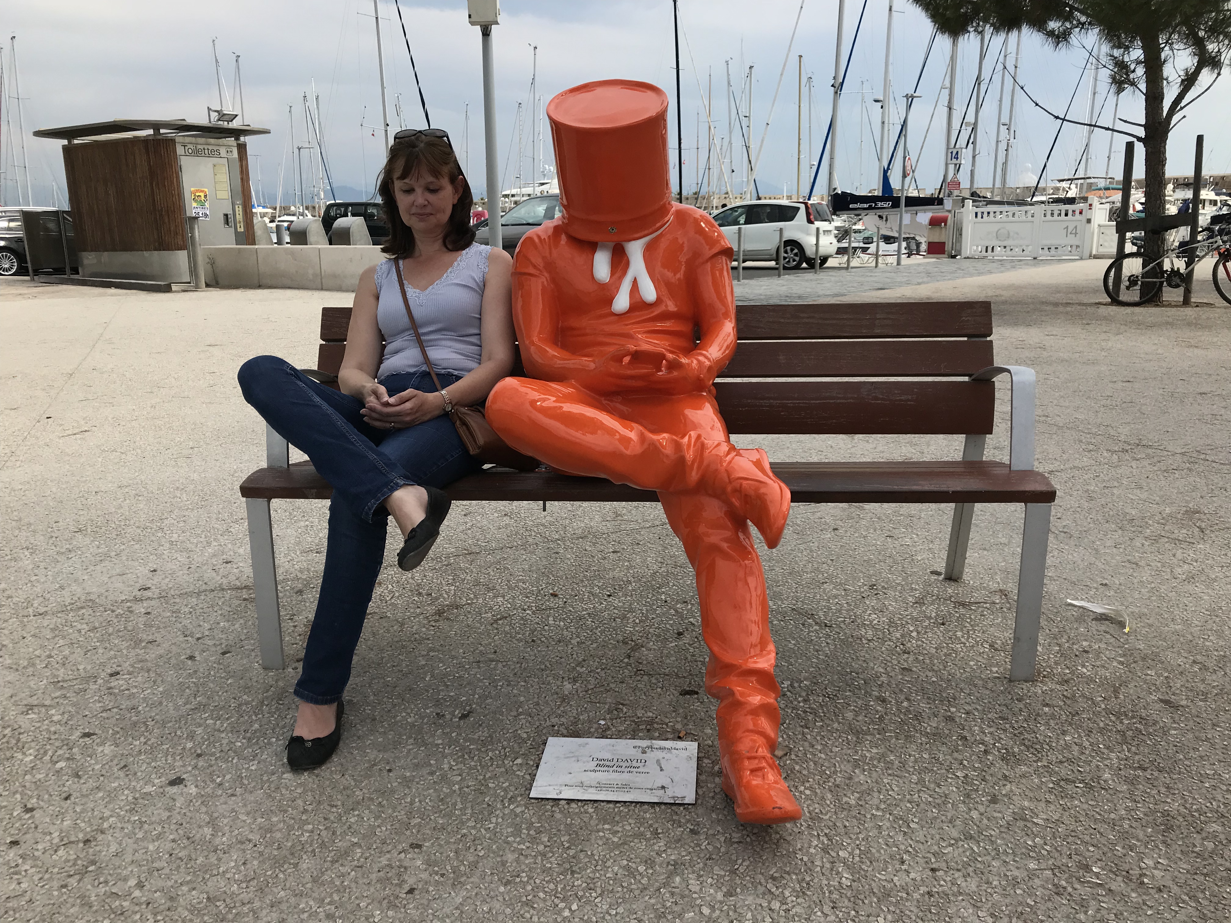 Catching the train was easy. Return tickets to Cannes were 5 euro. The train was air conditioned, double-decked, and quite full. Most of the journey we could see nothing but ugly concrete walls, with the occasional snatched view of sun shining on deep blue sea and boats.