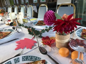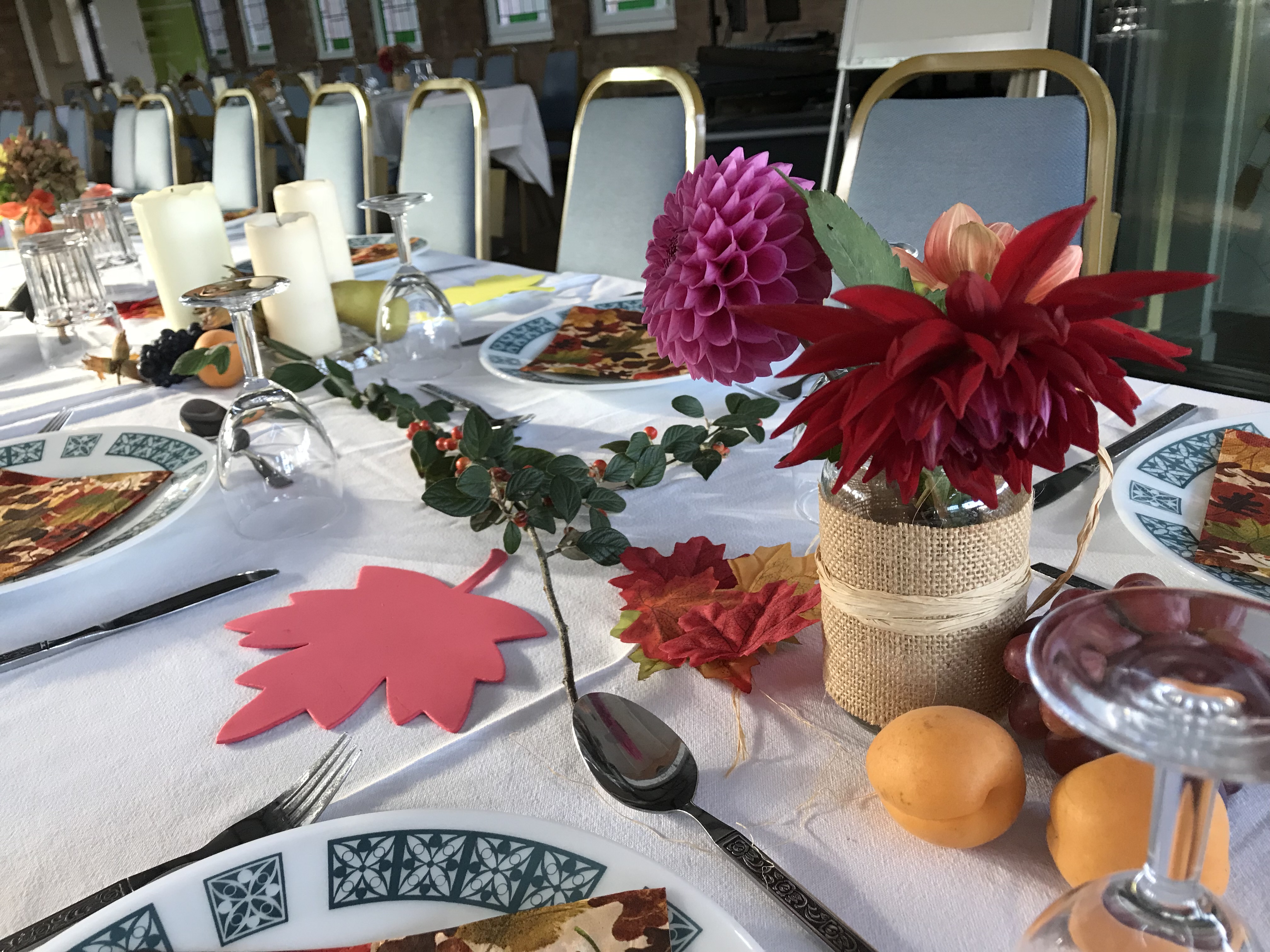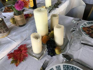 One idea which they modified was my “Thank you table,” which they thought had too much potential for precious items being lost/spoiled. They suggested instead a “thank you tree,” where people could write their thanks on autumn leaves, and attach them to the tree.