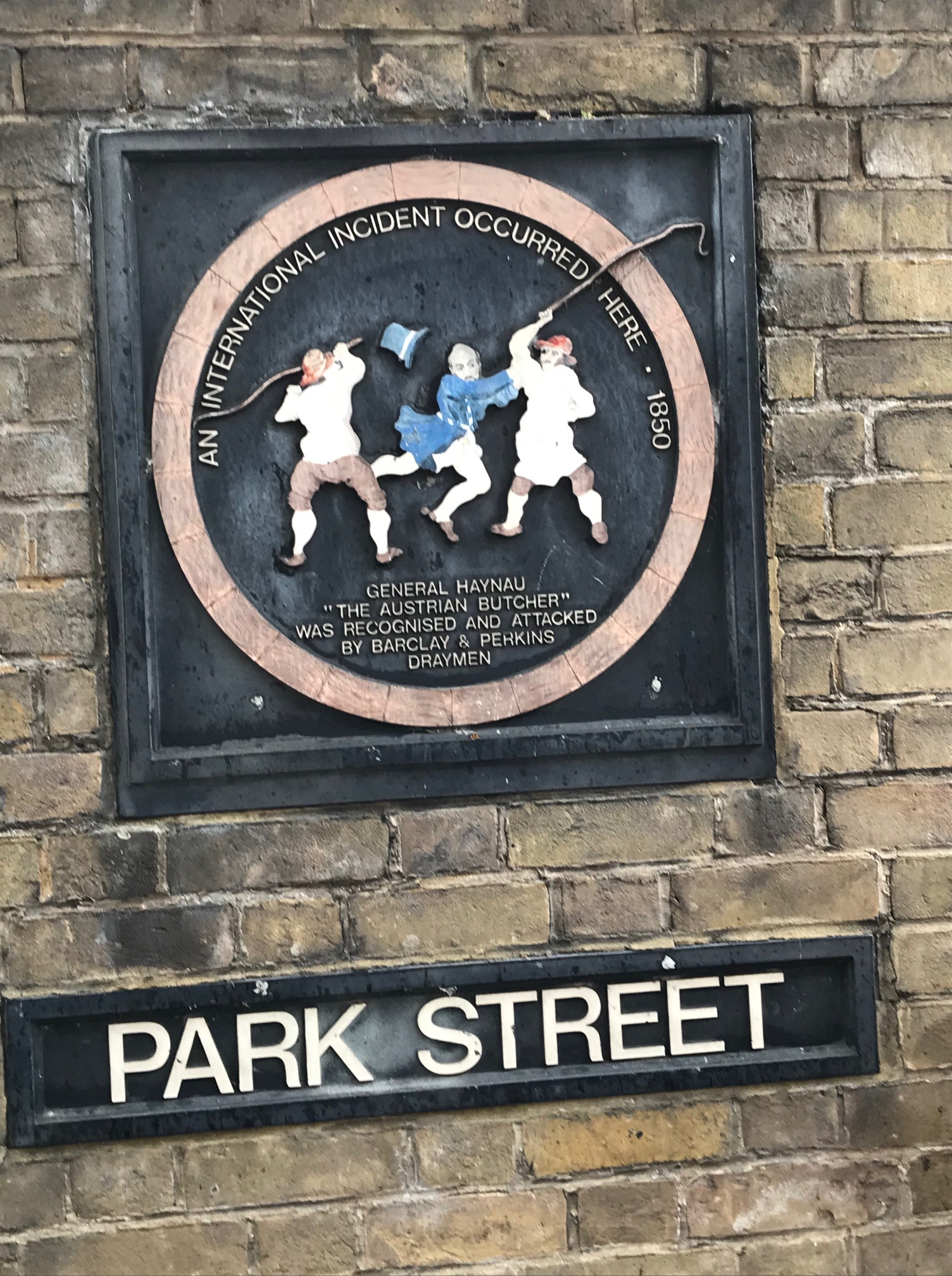 We moved on to another brewery, the Courage Brewery which at one time was the largest brewery in London, possibly in Europe. Unfortunately, it is now a housing complex. There was a plaque, which commemorated when the draymen beat up an Austrian general. The draymen were the delivery men, beefy workers, so the attack would have been painful. It caused an international incident at the time.
