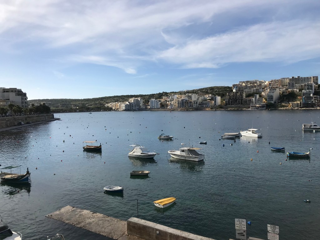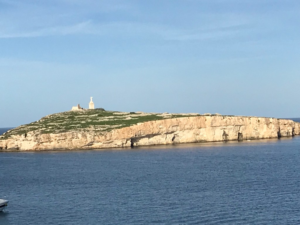 We drove to St. Paul’s Bay. This is where St.Paul was shipwrecked in Bible times. I assume there were fewer buildings in those days, though the hills would have been the same. We drove round the bay, and looked across the water to St.Paul’s Island (which has a giant statue of St.Paul on it).