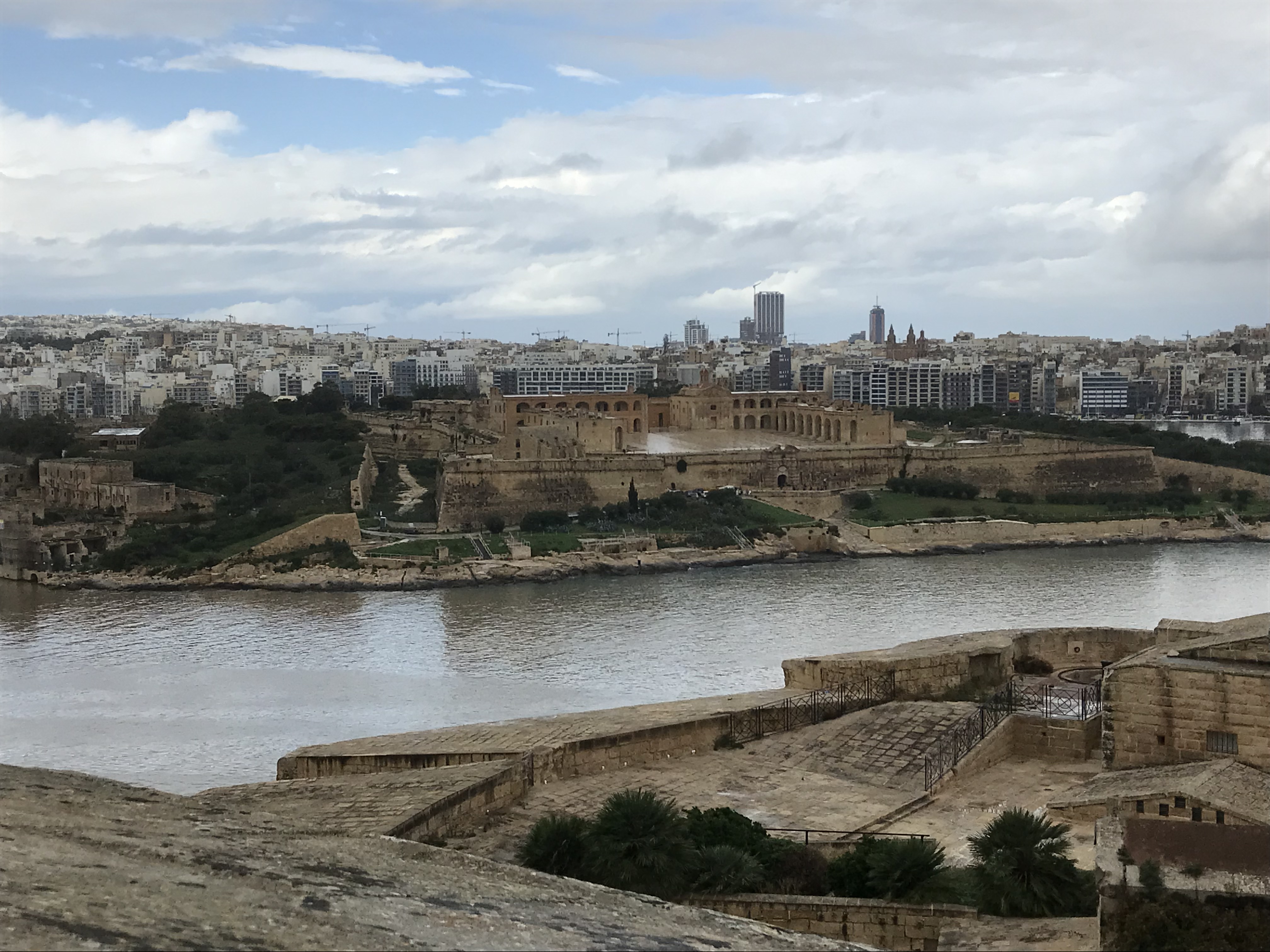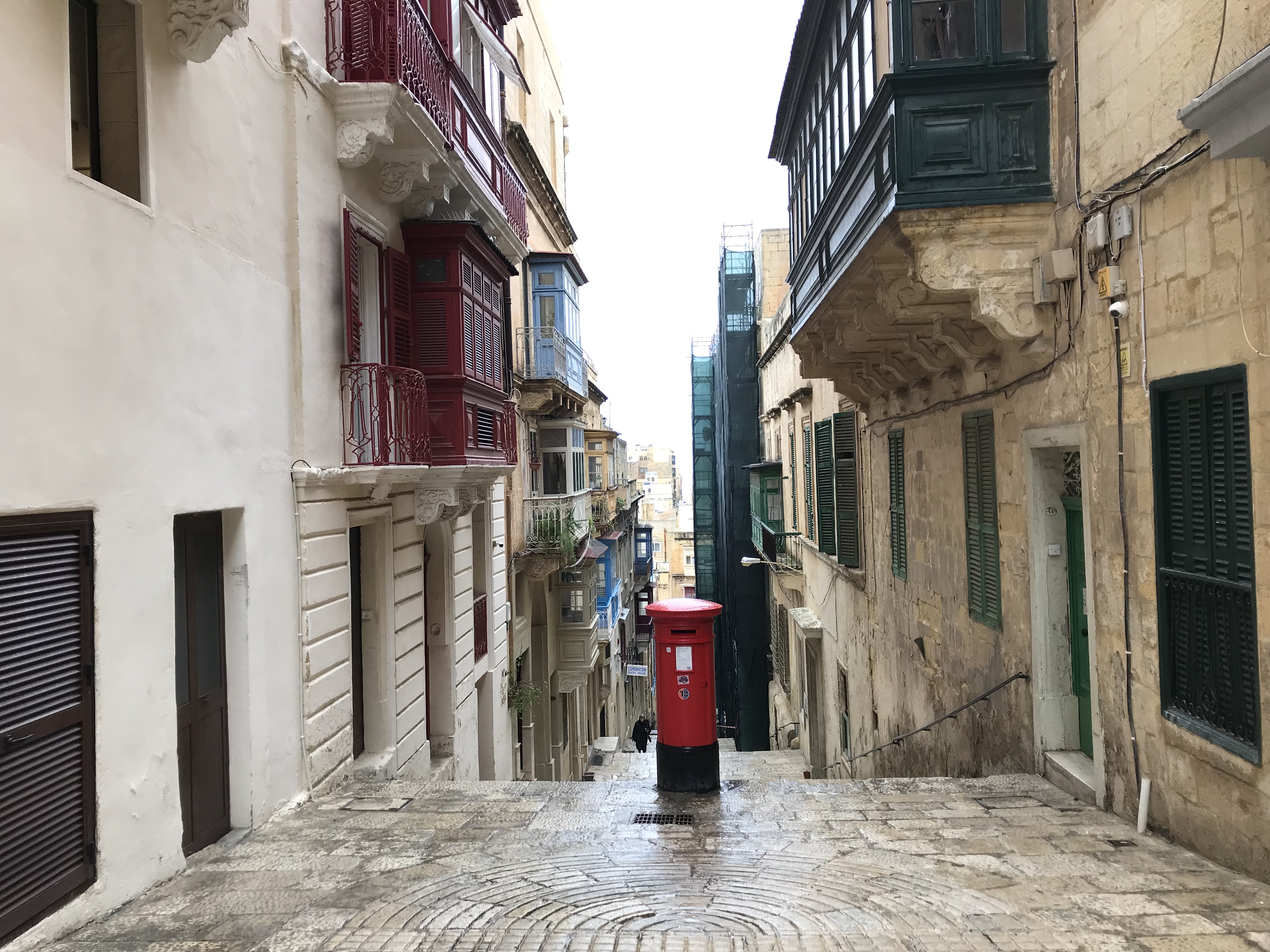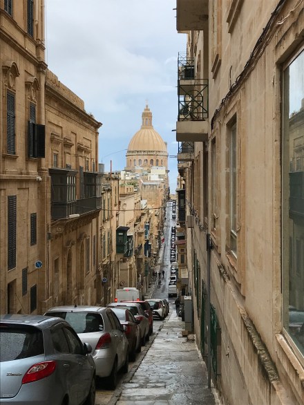 We woke to the sound of cranes at 6am. Short night. Yesterday, people were talking about heavy rain storms, but it was still dry so we went for a run. We have learnt that in Malta, if it’s going to rain heavily there is very little warning — a few drips and then an instant deluge. We therefore abandoned our normal route along the coast and ran in the streets near the apartment. We saw lots of Christmas lights, and a Nativity scene (as I said yesterday, Christmas arrives on 25th November in Malta). As soon as we felt the first drips of rain, we raced back to the apartment. We got inside just as it started to pour.