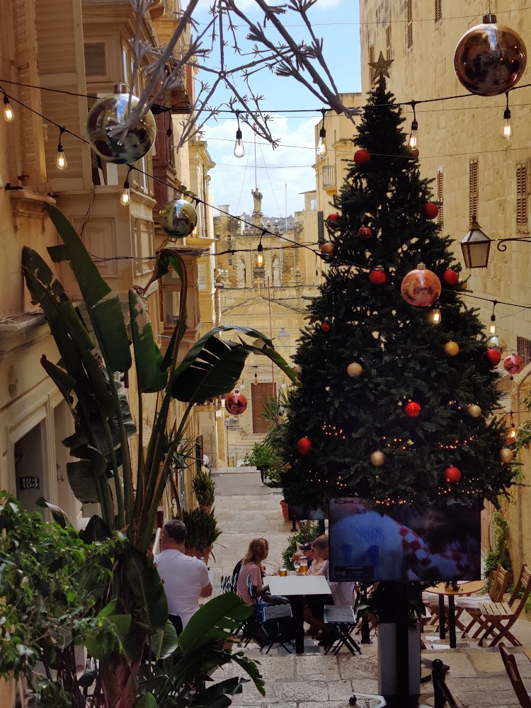 On the 25th November, Christmas arrives in Malta. We woke to sunshine. After our run, we had coffee and croissants on the balcony, looking across Republic Square to the blue sea in the distance. It was nice, though noisy as builders working on the Grand Palace opposite had their radio on full blast. Valletta IS noisy. If you live in a city you probably wouldn’t notice, but it was vastly different to our home in the countryside — not unpleasant, just different.