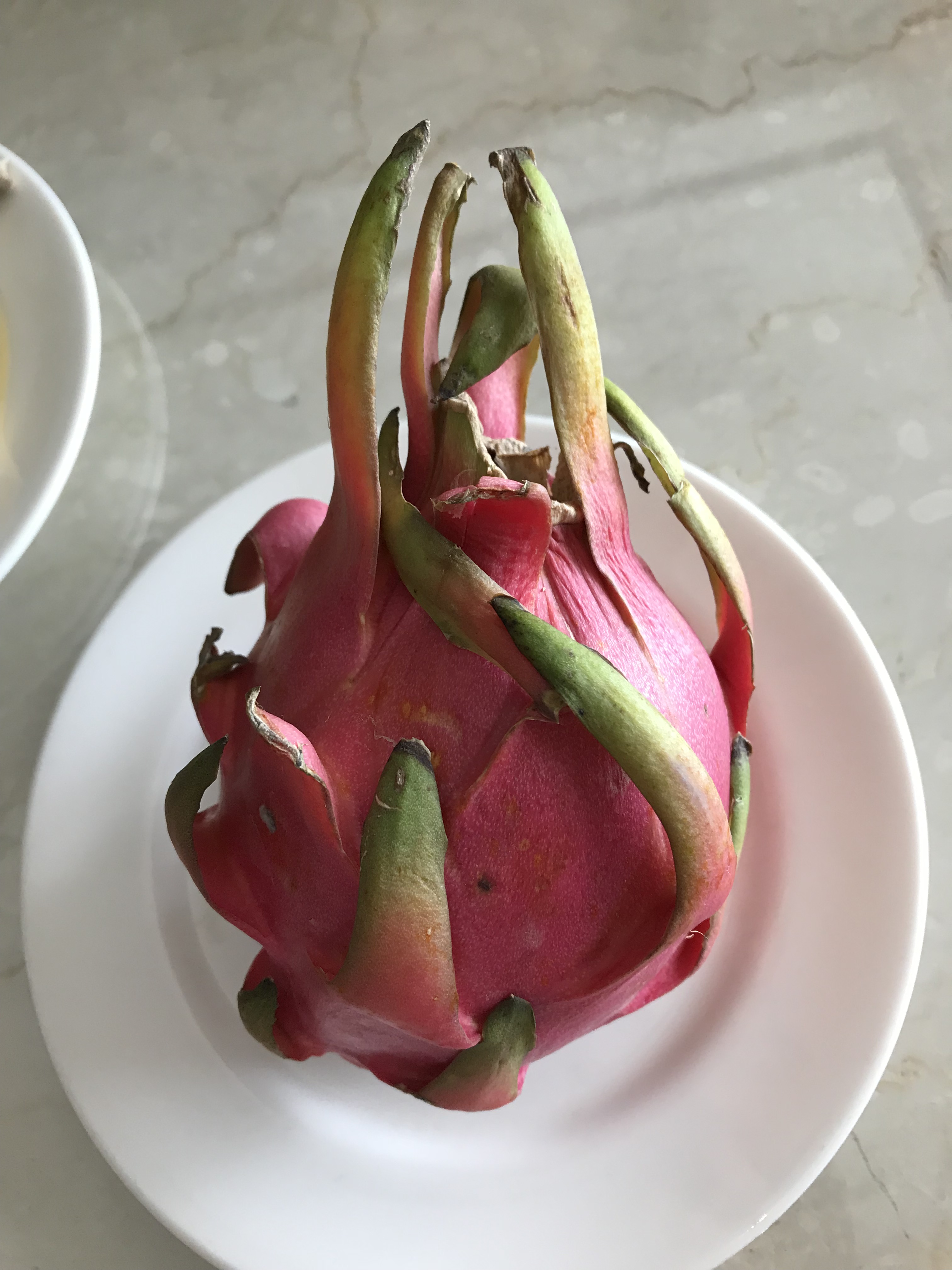 Still so much that’s new in India. Today I tried ‘Dragon Fruit’ or ‘pitaya’. I’ve seen them in supermarkets in the UK, but never known how to eat them. I asked the man delivering them, and he said to cut it lengthways into quarters, and then gently pull back the peel. I washed it first, just to eliminate chance of eating germs. It looks really amazing. It tastes really disappointing! Is okay, but nowhere near as exciting as it looks. Apparently, they are very good for you, and full of cancer-fighting nutrients. They grow on cacti.