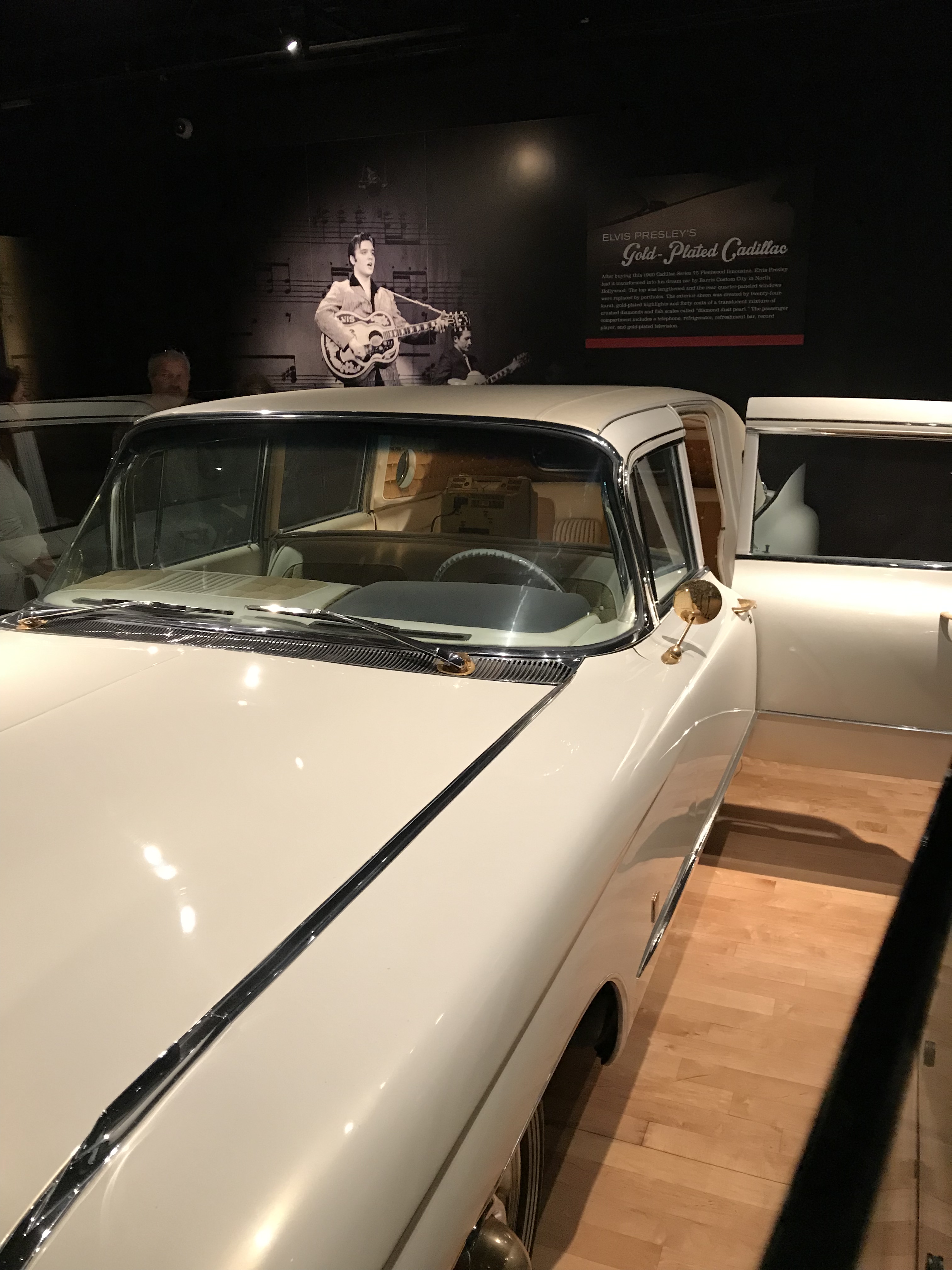 We had an early dinner, then caught the shuttle bus to The Ole Opry. The bus went via a few hotels, picking up excited middle-aged people on the way. The Opry was clearly a ‘thing’. We were met at the drop-off place by a man with a buggy for people who couldn’t walk, and there were giant guitars for photos, and a line of people waiting to go through security. Loud speakers were telling people to leave their guns and knives in their cars (not quite England then).