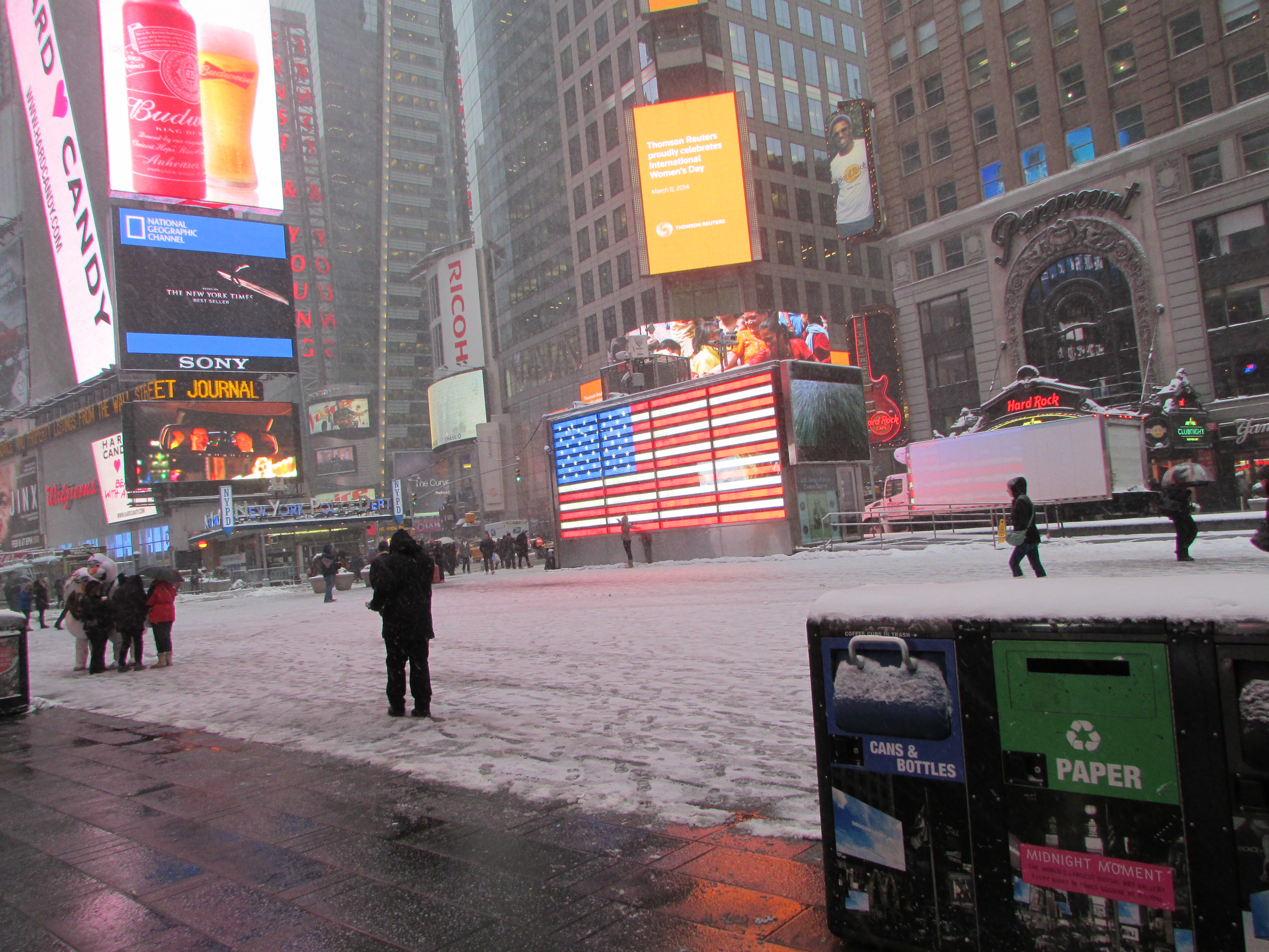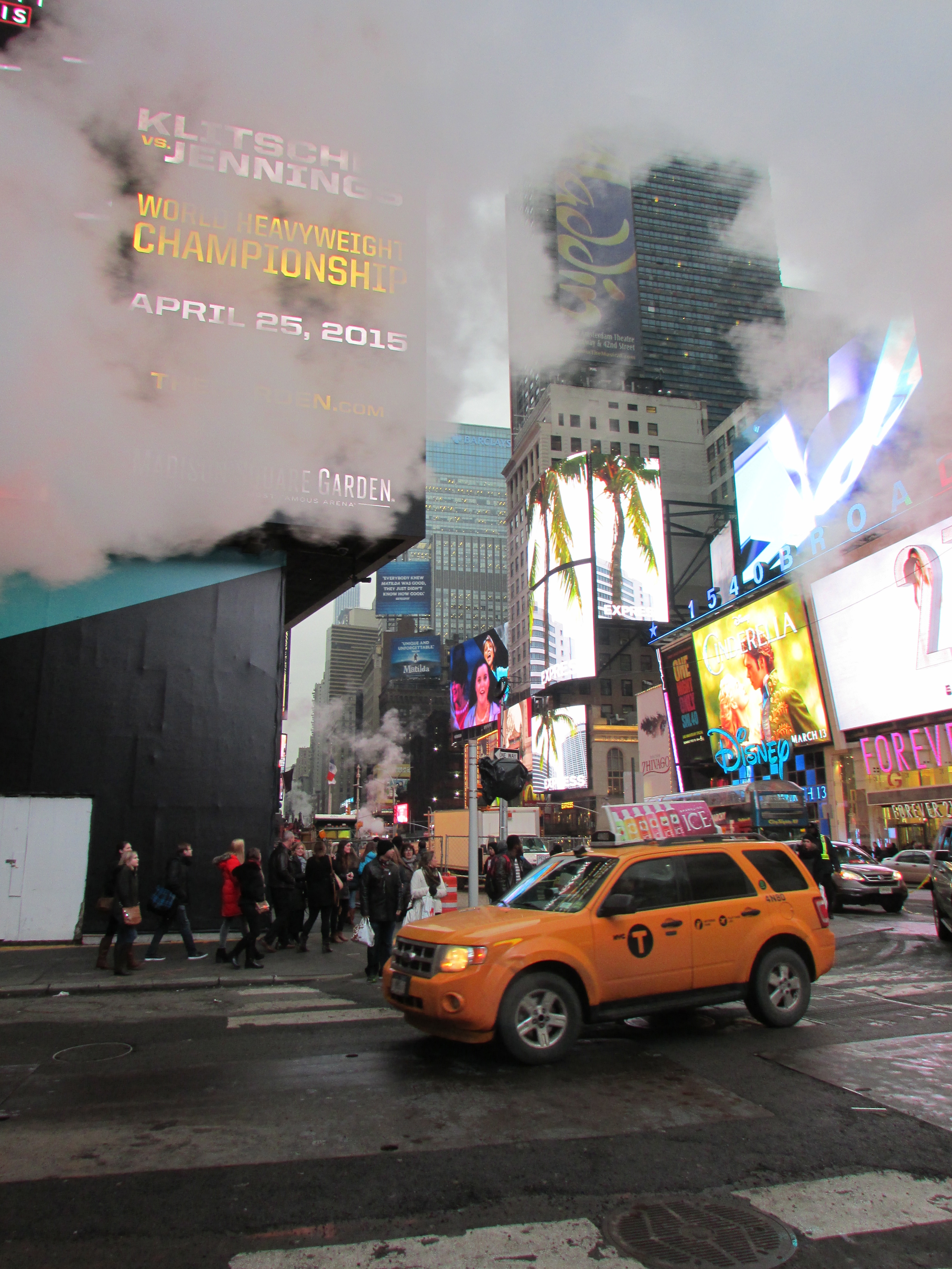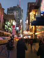 Looked down into Times Square. Pedro spent ages looking out and learnt the sequence of all the electronic billboards. Can recite them. Sad. Clever, but sad.