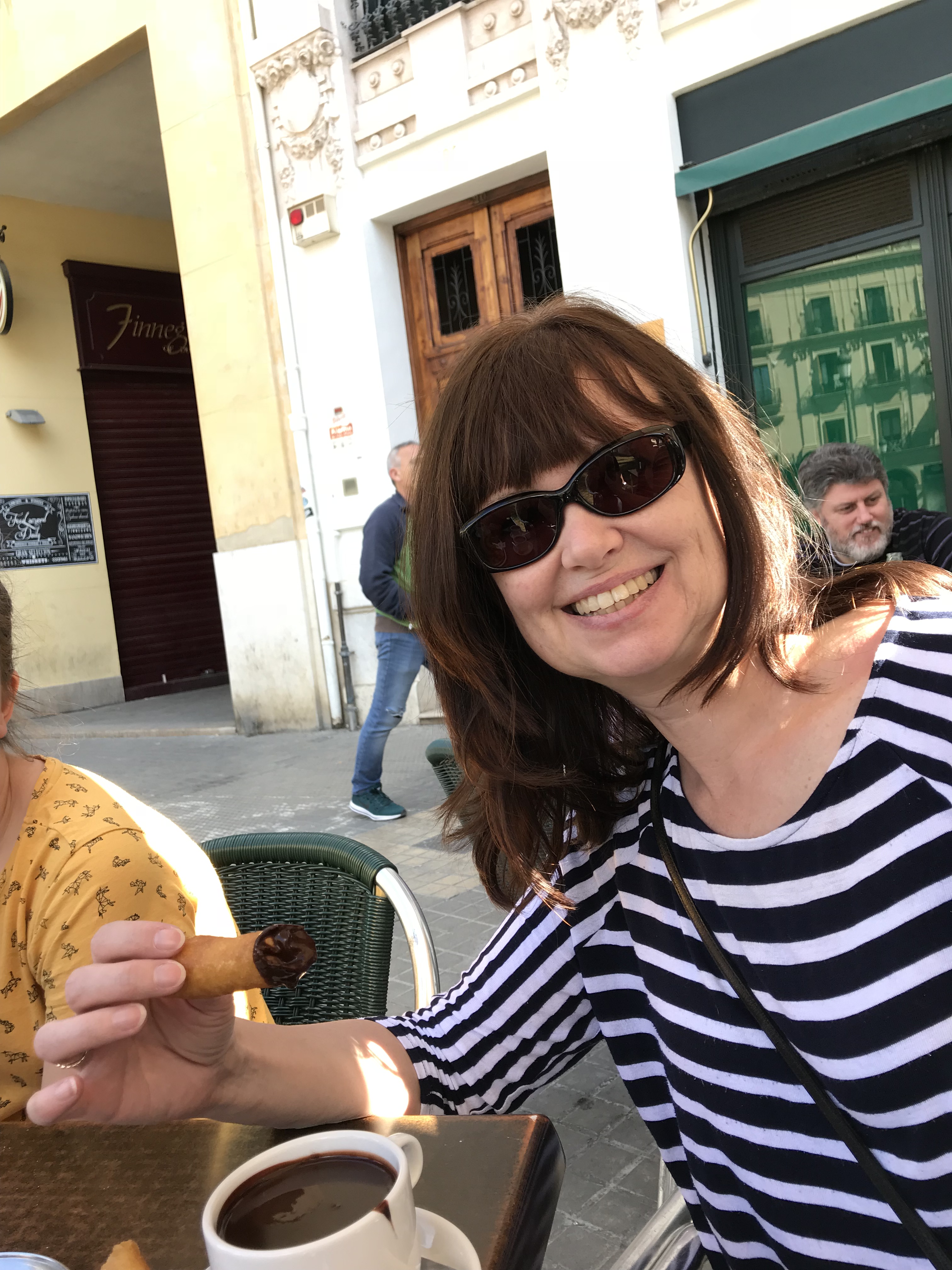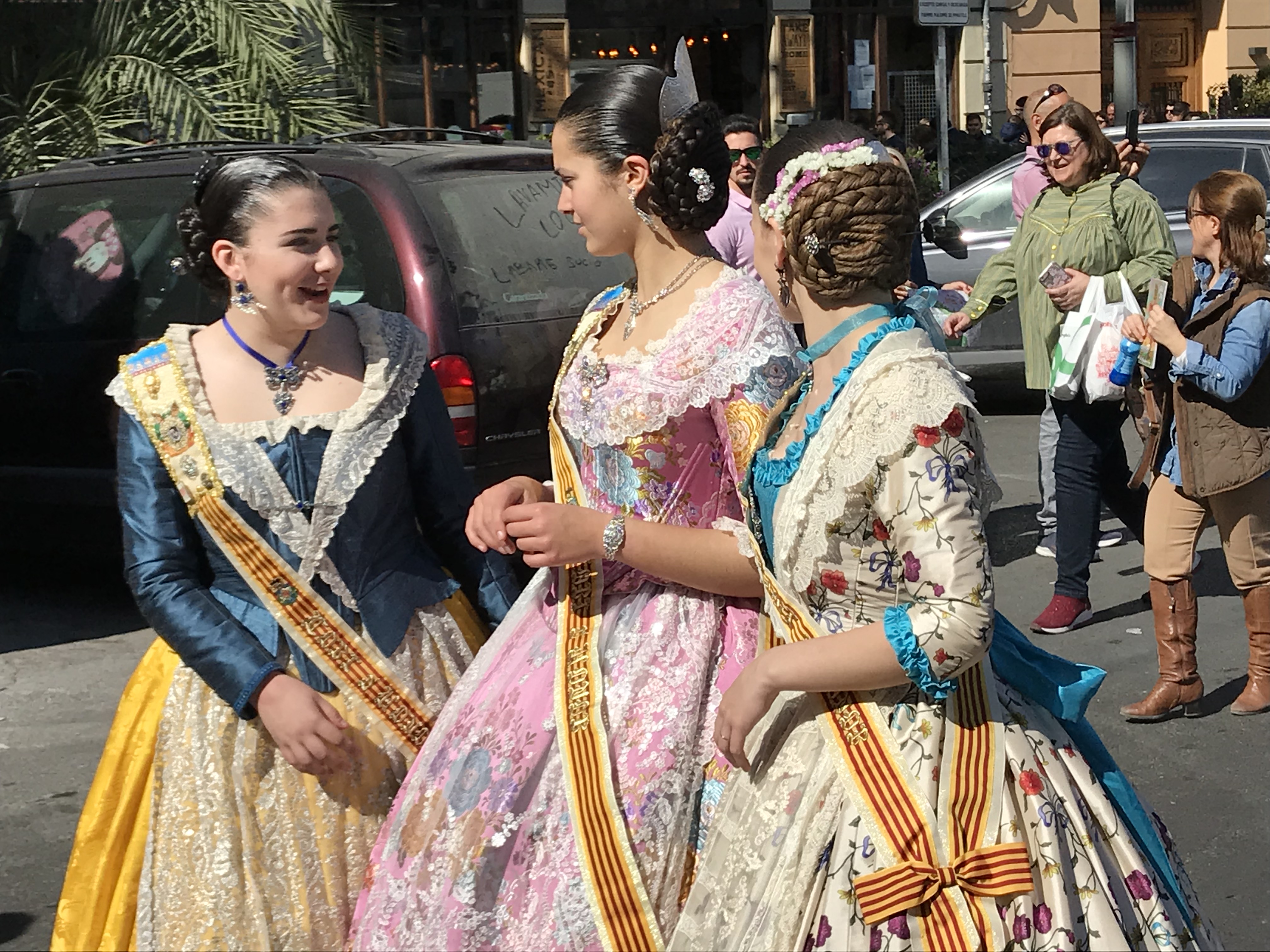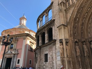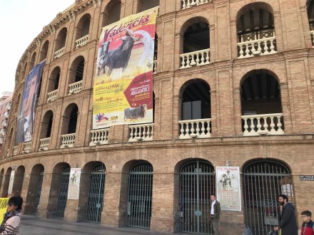 After showering in the cupboard, and coffee in the sunshine (I still haven’t found my old man smoking a cigar at an outside cafe – I drank Nescafe in the air bnb) we set off. Cousin L seems to be rather good at directions, so we followed her, through streets decorated with flags and lights ready for Las Fallas, and a lot of shut shops. Valencia wakes up slowly.