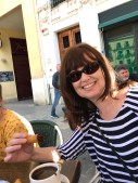 Ate lunch at La Brasqueta – or at least, the others ate lunch, I was catching an earlier flight so was too nervous to do more than nibble. We ate ‘Russian Salads’, which were a sort of variation on a potato salad, and then I had a rice and meat dish (not paella, but similar). We ate, and chatted, and listened to the romantic sound of exploding fireworks all around us. (Seriously, avoid Valencia in March unless you enjoy explosions.) The weather was warm, there were trees, and balconies, and lots of Spanish people and it was rather lovely. I drank beer, Cousin C drank sangria.