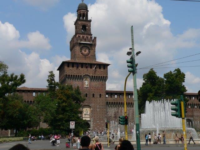 Walked down to Sforza Castle. This is a fifteenth century castle and at night it is floodlit. There is a big fountain in front and it is very pretty. Had ice creams.